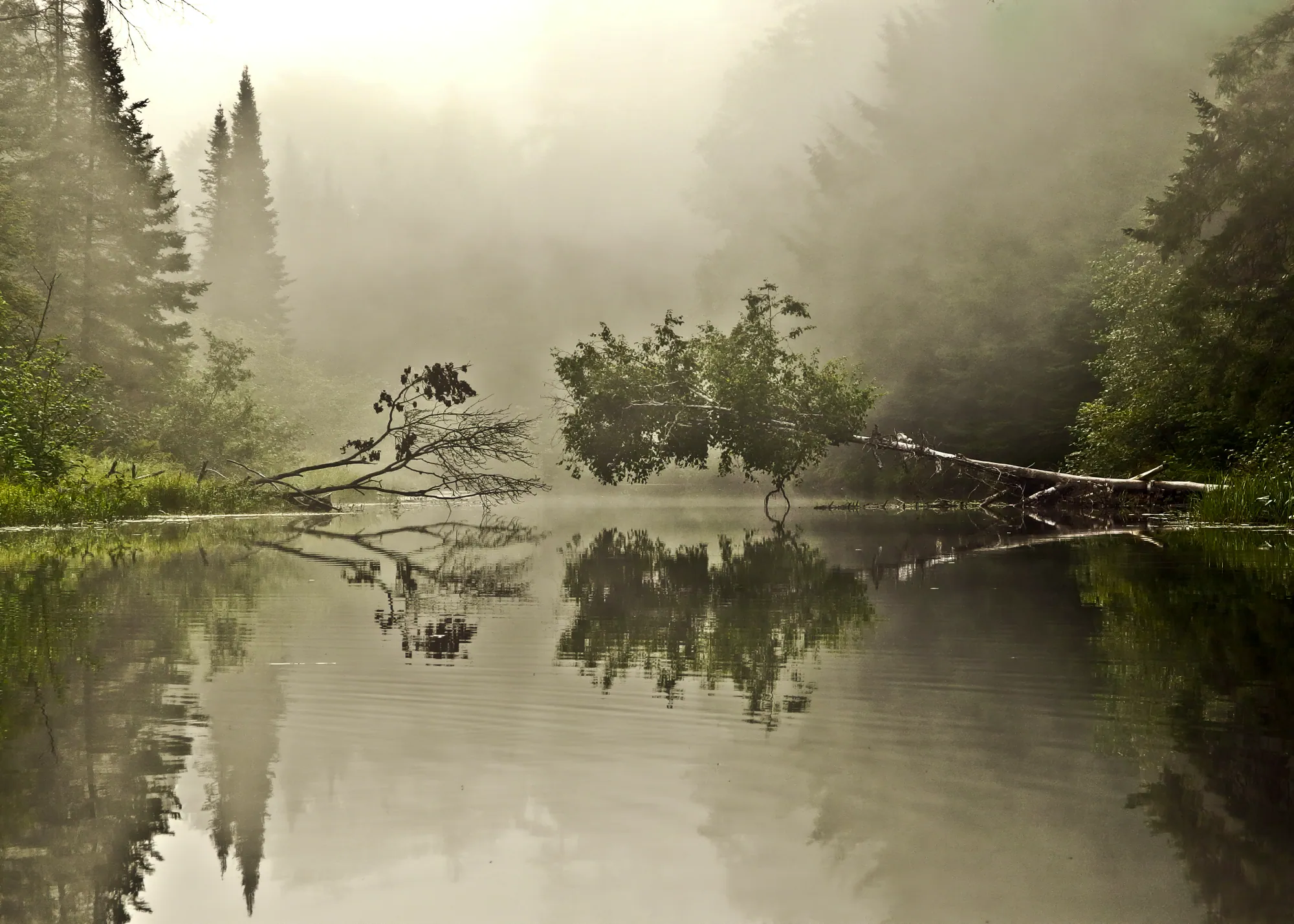 In Conversation offers a photographic reflection on the sustained and deep-rooted communication among the trees, even across species. Taken canoeing on the Seguing River (Canada), just around a bend, a visual gift.