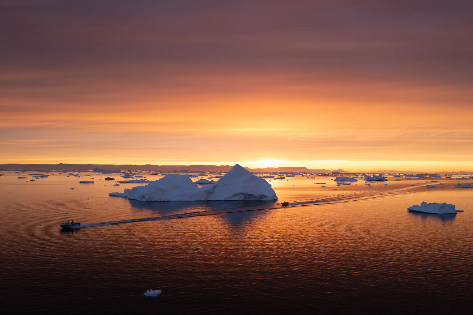 I was able to approach this huge iceberg off the coast at Qeqertalik in Western Greenland. Just left of the Iceberg there is a Zodiac with people in it to give a sense of scale.